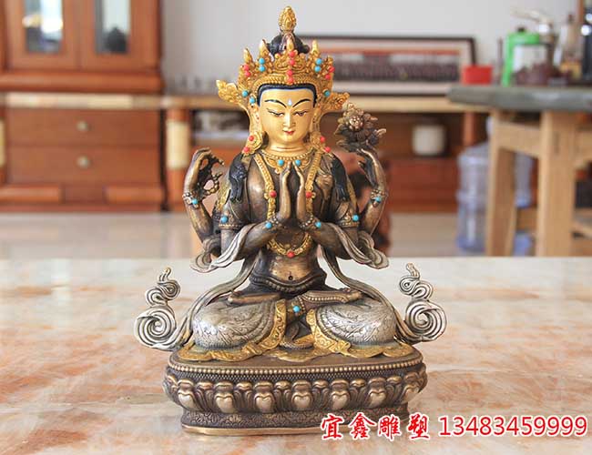 四臂观音铜雕艺术与宗教意义