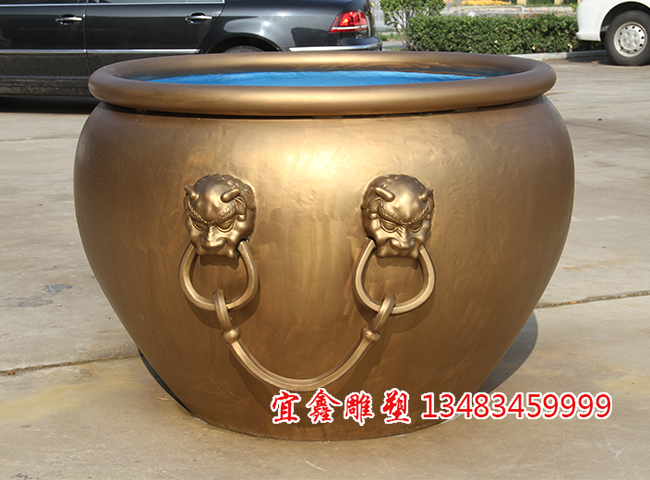 铜缸造型厚重,部分鎏金铜缸装饰有兽面纹(饕餮纹)、环耳等皇家纹样,彰显皇权威严。缸中“水”象征“江山社稷”,水常满则寓意国泰民安、政权稳固。