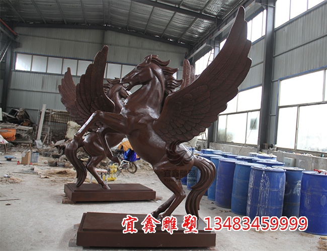 吉祥寓意:在中国文化中,马代表成功与进取,加上翅膀则寓意"腾飞",常见于企业或公共空间的雕塑。
