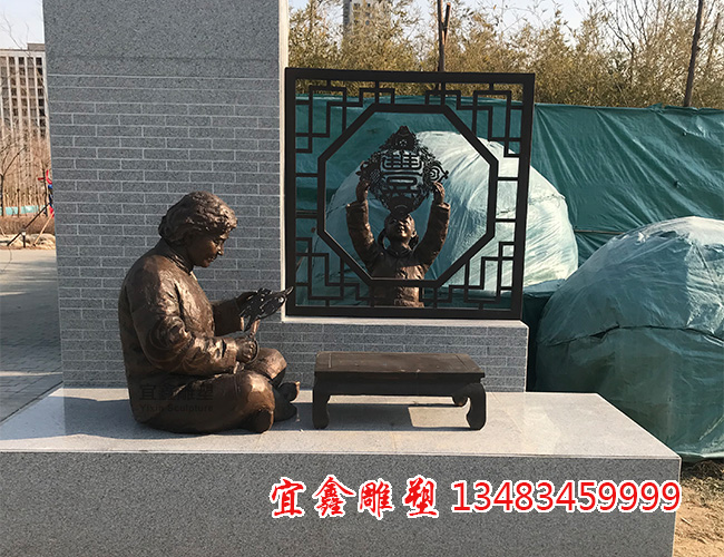 动态场景:雕塑可刻画人物贴窗花的瞬间,比如孩童踮脚贴窗花、老人手持剪纸等,赋予生活化的温情。