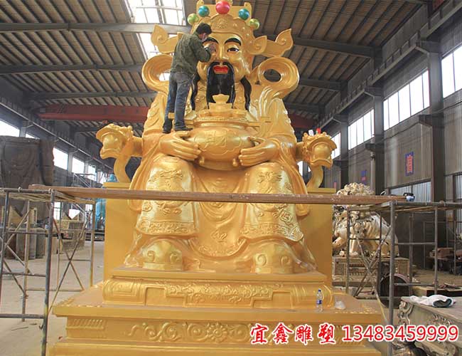 铜雕财神像的制作以失蜡法铸造工艺为主,采用青铜、黄铜或紫铜为原料。产品价格跨度较大:采用标准化模具生产的普通财神像,市场报价在数百元至数千元不等;而由专业设计师创作、采用精细手工着色工艺的作品,价格可达数万元。业内人士指出,产品档次的决定因素在于造型能力、铸造精度和表面处理工艺。
